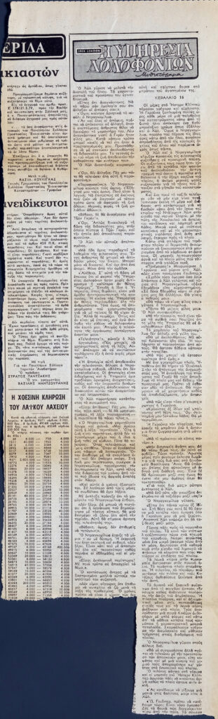 A clipping from the newspaper “To Vima”, dated August 21.
