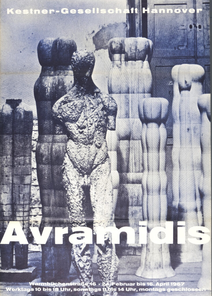 Poster for the solo exhibition of Greek sculptor Giannis Avramidis at the Kestner-Gesellschaft in Hanover, 1976.