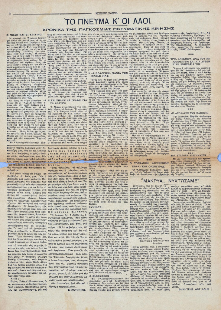 Εφημερίδα "Νεοελληνικά Γράμματα"