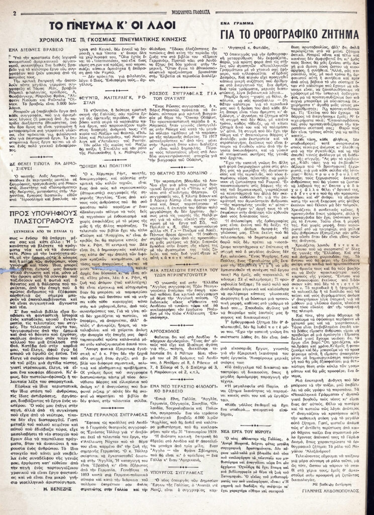 Εφημερίδα "Νεοελληνικά Γράμματα"
