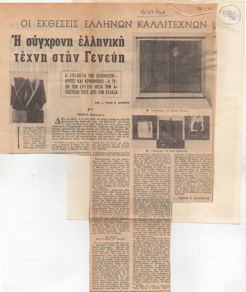 Engonopoulos Nikos (1907 - 1985) ; Andreou Kostas (1917 - 2007) ; Spiteris Tonis (1910 - 1986) ; Vaso Katraki (1914 - 1988) ; Vassiliou Spyros (1902 - 1985) ; Moralis Giannis (1916 - 2009) ; Gounaropoulos Georgios (1889 - 1977) ; Asteriadis Aginor (1898 - 1977) ; Argyrakis Minos (1920 - 1998) ; Eleftheriadis Takis (1911 - 1987) ; Άγγελος Αγγελόπουλος (1904 - 1995) ; Arlioti, Lili (1908 - 1979) ; Danil (Panagopoulos) (1924 - 2008) ; Kontopoulos Alekos (1904 - 1975) ; Vakalo Georgios (1902 - 1991) ; Papadimitriou Theodoros (1931 - 2018) ; Karras Christos (1930 - 2023) ; Georgiadis Andreas, o Kris (1892 - 1981) ; Dagklis Christos (1916 - 1991) ; Iliadis Kostas (1903 - 1991) ; Βαλέριος Καλούτσης (1927 - 2014) ; Kopsidis, Rallis (1929 - 2010) ; Baharian, Asadour (1924 - 1990) ; Maltezos Yannis (1915 - 1987) ; Γιάννης Μίχας (1938 - 2008) ; Ιάσων Μολφέσης (1925 - 2009)
