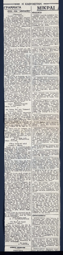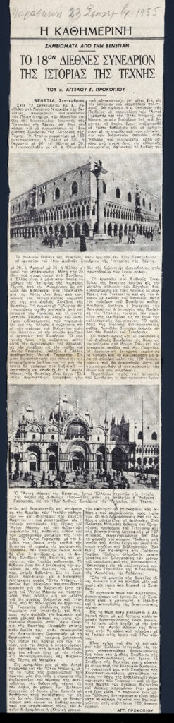 A clipping from the newspaper “Kathimerini”, dated September 23, 1955.