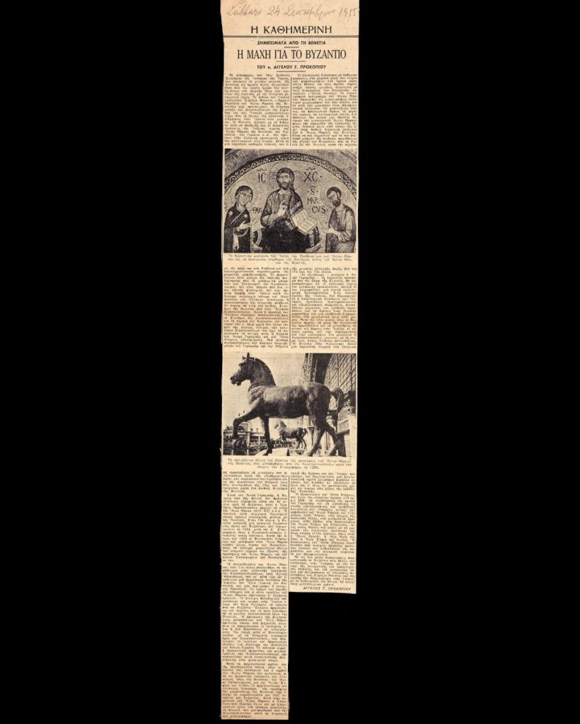 A clipping from the newspaper “Kathimerini”, dated September 24, 1955.