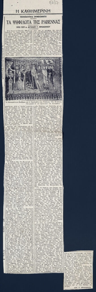 A clipping from the newspaper “Kathimerini”, dated June 1, 1957.