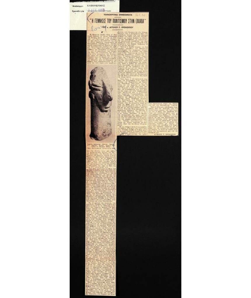 A clipping from the newspaper “I Kathimerini”, dated December 3, 1963, featuring a follow-up review of the release of a book by Christian Zervos, on the subject of Greek culture.