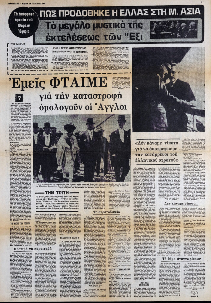 The Secret Archives of the Foreign Office. How Greece Was Betrayed in Asia Minor. The Great Secret of the Execution of the Six. “We Are to Blame for the Destruction,” the English Admit