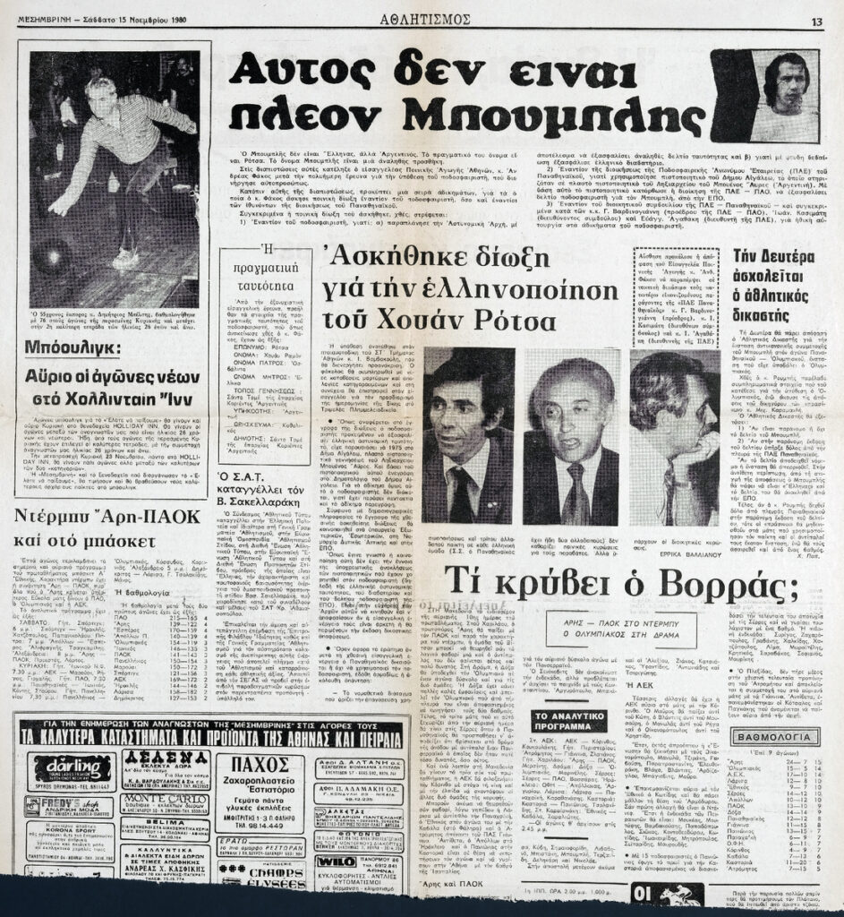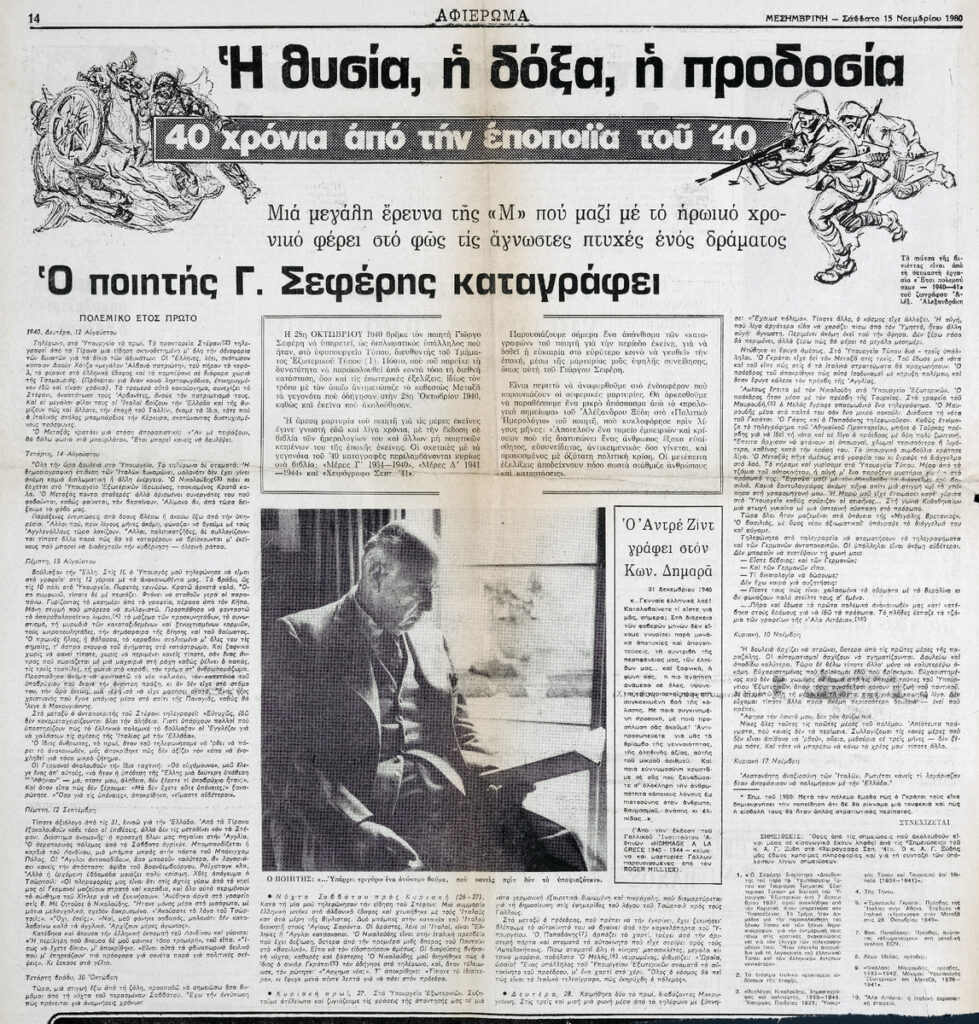 A clipping from the newspaper “Mesimvrini”, dated November 15, 1980.