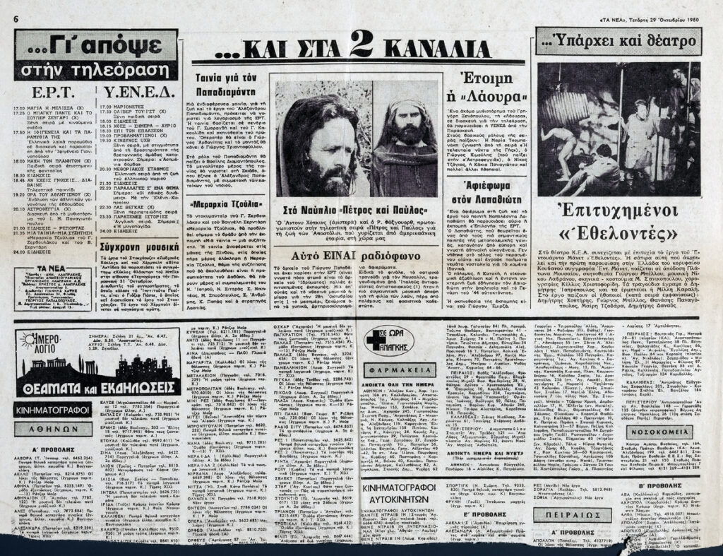 A clipping from the newspaper “Ta Nea”, dated October 29, 1980.