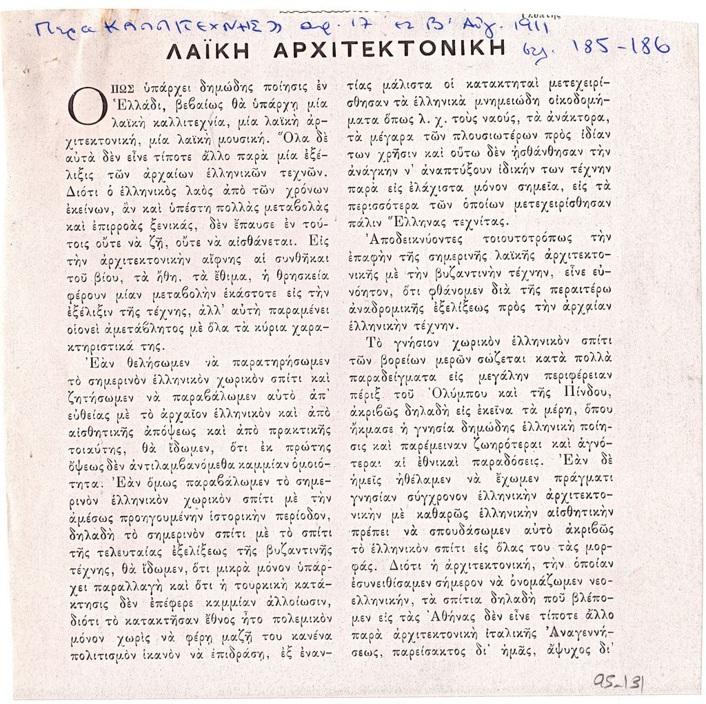 Charisiadis Dimitris A. (1911 - 1993) ; Hatzikyriakos-Ghika Nikos (1906 - 1994) ; Moralis Yannis (1916 - 2009) ; Zannas Pavlos (1929 - 1989) ; Pappas Giannis (1913 - 2005) ; Άγγελος Δεληβορριάς (1937 - 2019) ; Nelly's (1899 - 1998) ; Fiedler Franz (1885 - 1956) ; Άγγελος Σεραϊδάρης
