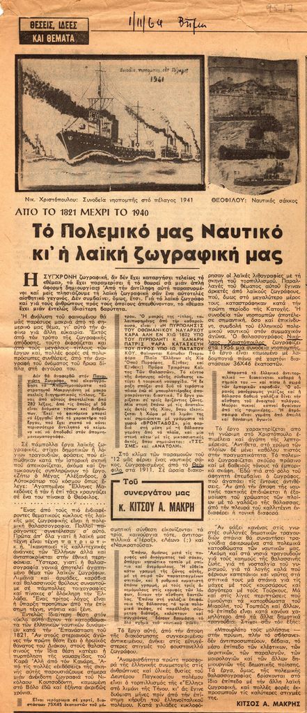 Engonopoulos Nikos (1907 - 1985) ; Kontoglou Fotis (1895 - 1965) ; Hatzikyriakos-Ghika Nikos (1906 - 1994) ; Papaloukas Spyros (1892 - 1957) ; Asteriadis Aghinor (1898 - 1977) ; Theofilos (Chatzimichail) (24/03/1934) ; Sochos Antonios (1888 - 1975) ; Pikionis Dimitris (1887 - 1968) ; Christidis Sotiris (1858 - 1940) ; Δημήτριος Μωρέττης ; Κωνσταντίνος Δοξιάδης ; Αλεξάνδρα Πασχαλίδη ; Γ. Γιαννουλέλης ; Γ. Βαλάτας ; Π. Χατζόπουλος