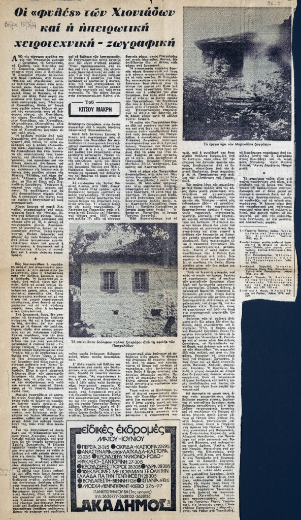 A clipping from the newspaper “To Vima”, dated May 15, 1977.