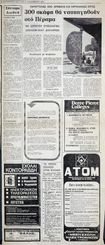 A clipping from the newspaper “To Vima”, dated September 21, 1975.