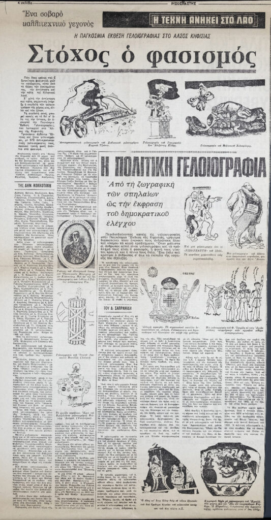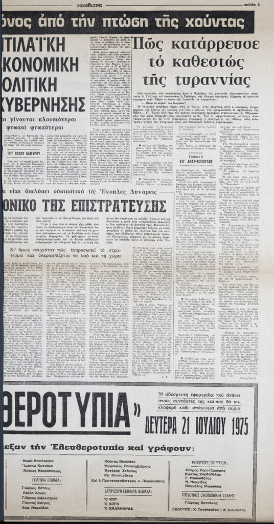 A clipping from the newspaper “Rizospastis”, dated July 20, 1975. In the same clipping: “Political cartoon”.