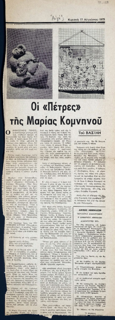 A clipping from the newspaper “I Avgi”, dated August 17, 1975.