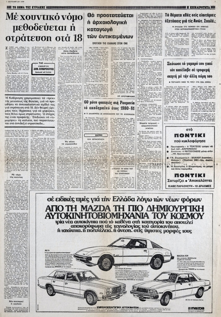 A clipping from the newspaper “To Vima”, dated September 2, 1979.