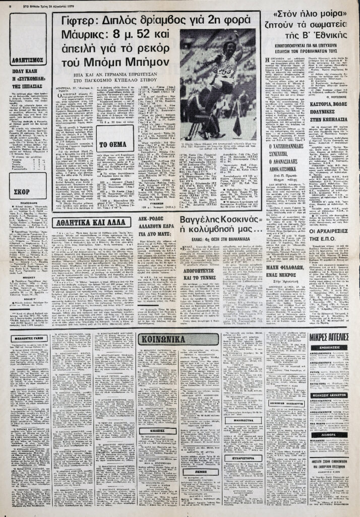 A clipping from the newspaper “To Vima”, dated August 28, 1979.