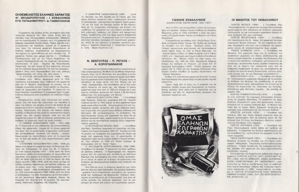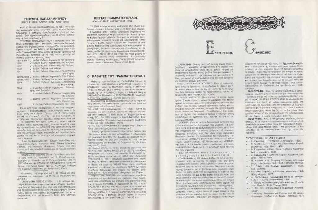 Asteriadis Aghinor (1898 - 1977) ; Μαρία Φιοράκη (1912 - 1970) ; Theofilos (Chatzimichail) (24/03/1934) ; Kkasialos Michail (1885 - 1974) ; Lydakis Stelios (1933) ; Gialouris Nikos (1928 - 2003) ; Spatharis Eugenios (1924 - 2009) ; Κατερίνα Φιλδισάκου (1926) ; Σώτος Παπασπυρόπουλος ; Νικόλαος Χριστόπουλος (1880 - 1967) ; Άννα Βορνόζη ; Αριάδνη Βορνόζη ; Yeros Dimitris (1948) ; Grigorakis Nikos I. (1944 - 2022) ; Ουρανία Δημουλά-Ψυρροπούλου ; Τζένη Δρόσου (1928) ; Agapiou-Souli Lia (1933) ; Χρήστος Καγκαράς (1918 - 2010) ; Γιώργος Κεραμίδας (1933) ; Kopsidis Rallis (1929 - 2010) ; Δημήτρης Κωστόπουλος (1939) ; Michelis Effie P. (1906 - 1984) ; Bost (Mentis Bostantzoglou) (1918 - 1995) ; Pop Maria (1925 - 2009) ; Sideris Takis (1929) ; Γιάννα Ξέρα (1956) ; Γιώργος Ρήγας (1921 - 2014) ; Ορέστης Βρέντζος ; Γιάννης Θεοφίλης (1926 - 2006) ; Lazarou Stamatis ; Αντώνης Μαρκάκης ; Αλκιβιάδης Σκουλάς ; Eleftheriadi-Vergou Niki (1954) ; Γιάννης Μητράκας (1936) ; Ειρήνη Ταχατάκη ; Στέλιος Γαβριήλ ; Τζέννυ Παπαδάκη-Μελισσηνού ; Άγγελος Κουγιουμτζής (1920 - 2011) ; Αθανάσιος Γουδής ; Στρατής Αναστασέλλης (1908 - 1997) ; Λευτέρης Θεοδώρου ; Καίτη Νικολάου (1926) ; Κωνσταντίνος Σέρβος ; Aerakis, Polydoros ; Δημήτρης Βανίδης ; Δήμητρα Γκάβα ; Ανδρέας Καλογεράς ; Αριστείδης Λαούδης ; Αικατερίνη Μπελδέκου ; Μόνα Novotny-Κουγιουμτζή ; Μιχάλης Πανταζής ; Γεράσιμος Παπαδάτος ; Μανώλης Σαλούστρος ; Ισμήνη Σηφάκη ; Ευάγγελος Τριαντάφυλλος ; Λεωνίδας Τσαλαμπαμπούνης (1901 - 1976) ; Σοφία Τσάτσου