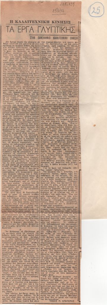 Teloglion Foundation of Arts ; Spiteris Tonis (1910 - 1986) ; Goulaki-Voutira Alexandra (20th century) ; Makris Kitsos (1917 - 1988) ; Mavrommatis Emmanouil (1935) ; Xydis Alexandros (1918 - 2004) ; Papanikolaou Miltiadis (1947) ; Pantermalis Dimitrios (1940) ; Mourelos Georgios (1912 - 1994) ; Christou Chrysanthos (1922 - 2016) ; Kazazi Sofia (20th century) ; Stefanidis Manos (1954) ; Varopoulou Eleni (1945 ) ; Kampouridis Charis (1950) ; Schina Athina ; Georgiadou-Kountoura Euthymia (20th century) ; Kotidis Antonis (1949) ; Charalampidis Alkis (20th century) ; Christianopoulos Ntinos (1931 - 2020) ; Nikonanos Nikos (20th century) ; Fatourou-Isychaki Kanto (20th century) ; Skaltsa Matoura (20th century) ; Sachini Aggeliki (20th century) ; Nikoulis G. (20th century) ; Ioannidis Andreas (1950) ; Pappa Sania (1957)