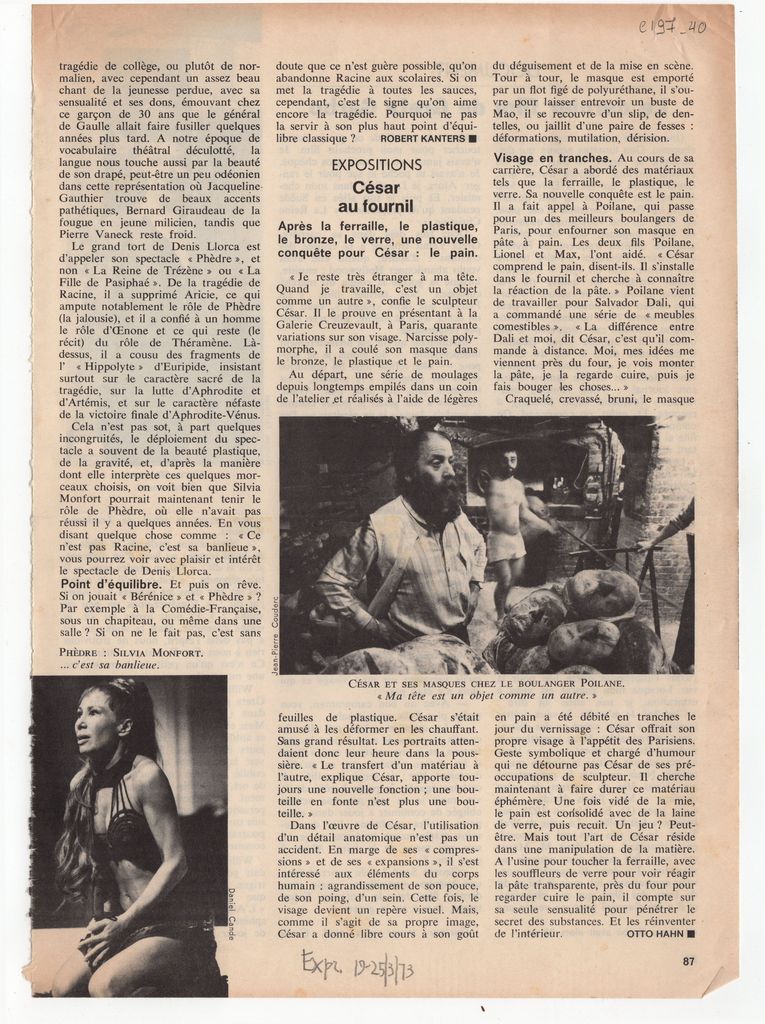 Christo ; Opy Zouni (1941 - 2008) ; César (1921 - 1998) ; Kontopoulos Alekos (1904 - 1975) ; Restany Pierre (1930 - 2003) ; Klein Yves (1928 - 1962) ; Karas Christos (1930 - 2023) ; Arman (1928 - 2005) ; Saint Phalle Niki de (1930 - 2002) ; Daniel Spoerri ; Jean Tinguely (1925 - 1991) ; Gerard Deschamps ; Charos Vassilis (1938 - 2000) ; Themos Maipas (1936 - 1996) ; Hermann Blauth (1939 - 2012) ; Raymond Hains ; François Dufrene ; Jacques Villegle