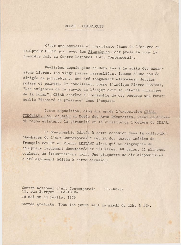 César (1921 - 1998) ; Louis Chavignier ; Michel Gaudet ; Cardenas, Agustin (1927 - 2001) ; Emile Gilioli ; Sato Ado (1936 - 1994) ; Gerard Schneider ; Claude Viseux ; Natalia Dumitresco ; Albert Feraud ; Alexandre Istrati ; Jose Hernandez ; Bryen, Camille (1907 - 1977) ; Antoni Clave ; Jean Francois Revel ; Andre Villers ; Ricard Guino i Boix ; Italo Bartoletti ; Pierre Gastaud ; Serge Rezvani ; Key Sato ; Gigi Guadagnucci ; Loïs Frederick ; Robert Roussil ; René Dürrbach ; Pierre Theunissen ; Svetlana Volkov ; Valery A. Volkov