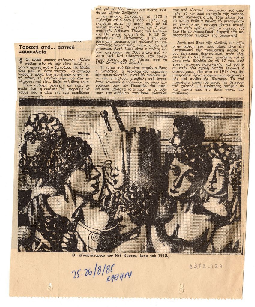 Εφημερίδα "Η Καθημερινή", 25-26/08/1985