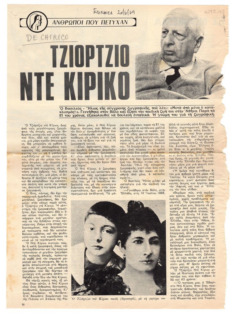 Kontopoulos Alekos (1904 - 1975) ; Andreas Georgiadis, Kris (1892 - 1981) ; De Chirico Giorgio (1888 - 1978)