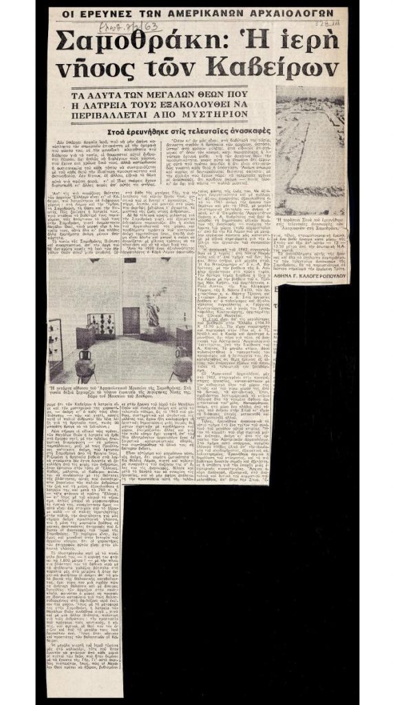 A clipping from the newspaper “Eleftheria”, dated February 7, 1963.