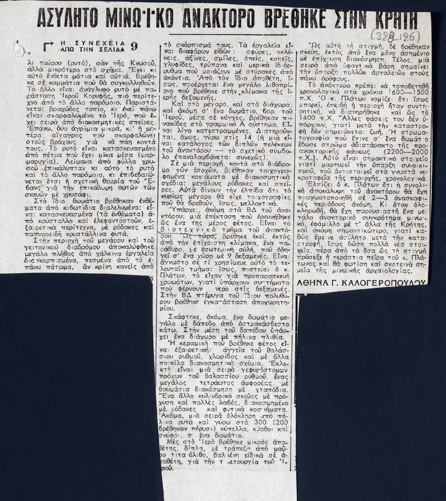 A clipping from the newspaper “Eleftheria”, dated October 20, 1963.