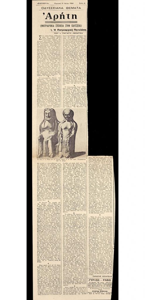 A clipping from the newspaper “Eleftheria”, dated May 31, 1964.