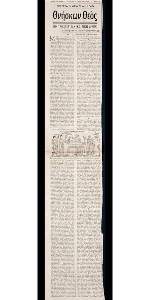 A clipping from the newspaper “Eleftheria”, dated April 26, 1964.
