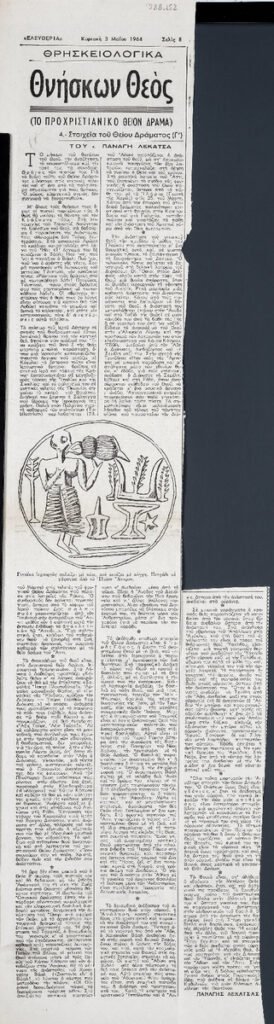 A clipping from the newspaper “Eleftheria”, dated May 3, 1964.