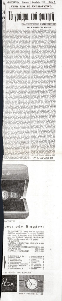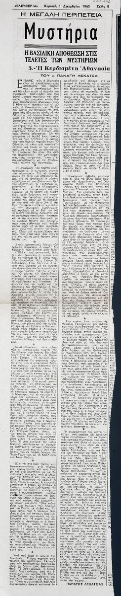 A clipping from the newspaper “Eleftheria”, dated December 1, 1963.