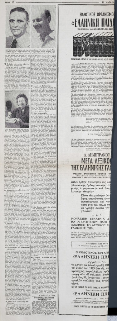 A clipping from the newspaper “I Kathimerini”, dated November 22, 1964.