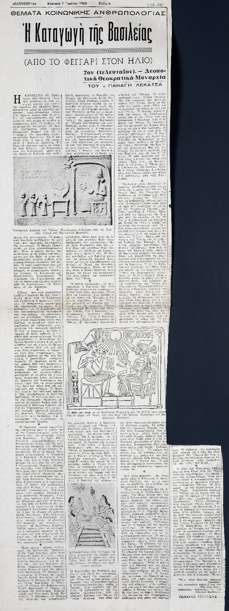 A clipping from the newspaper “Eleftheria”, dated July 7, 1963.