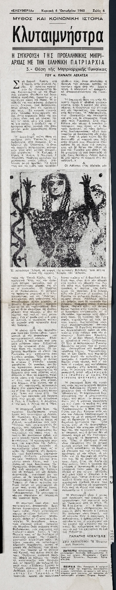 A clipping from the newspaper “Eleftheria”, dated October 6, 1963.