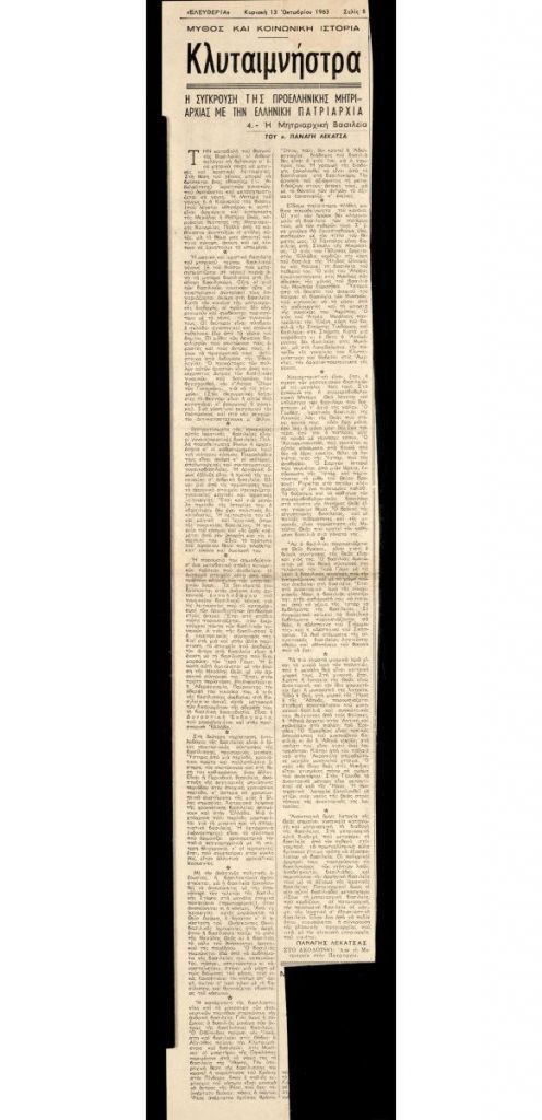 A clipping from the newspaper “Eleftheria”, October 13, 1963.