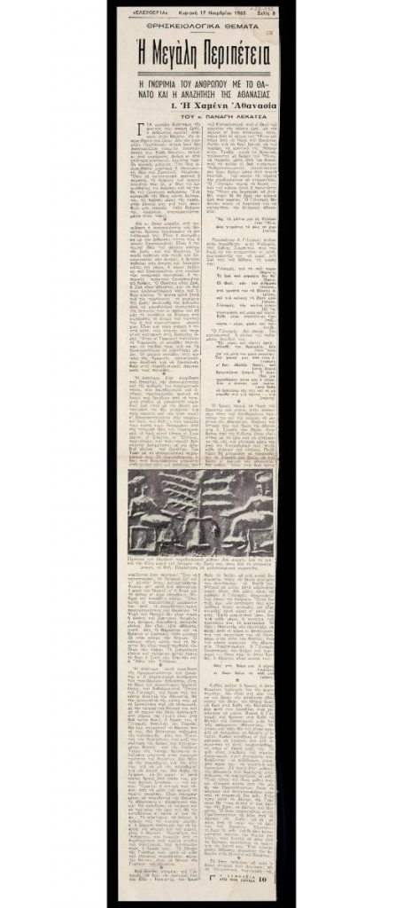 A clipping from the newspaper “Eleftheria”, dated November 17, 1963.
