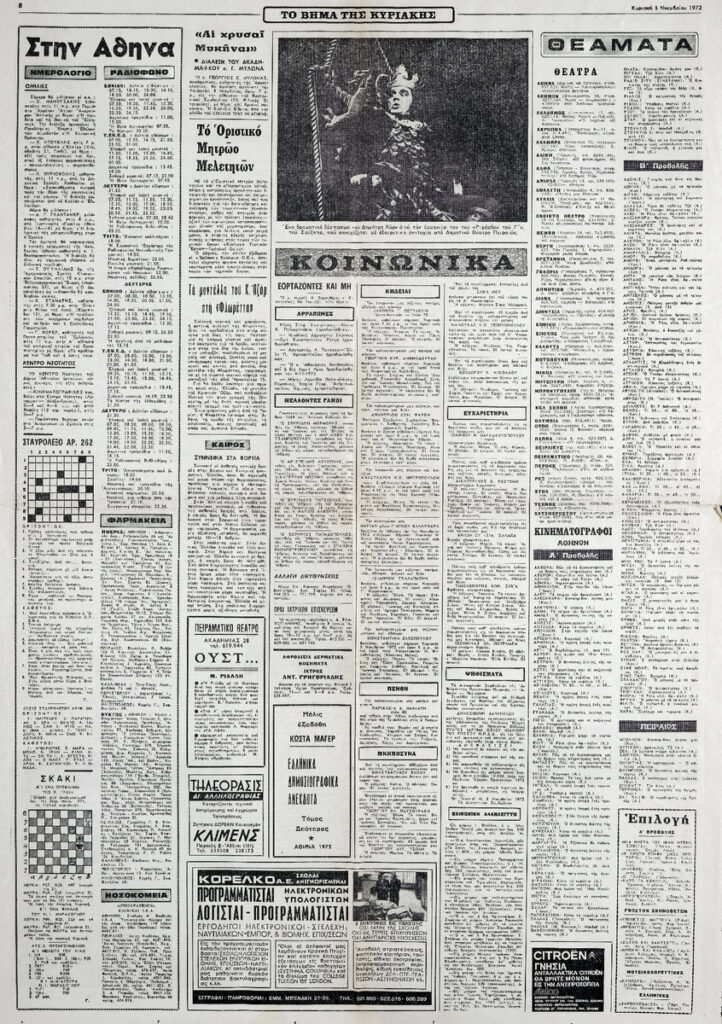A clipping from the newspaper “To Vima”, dated November 5, 1972.