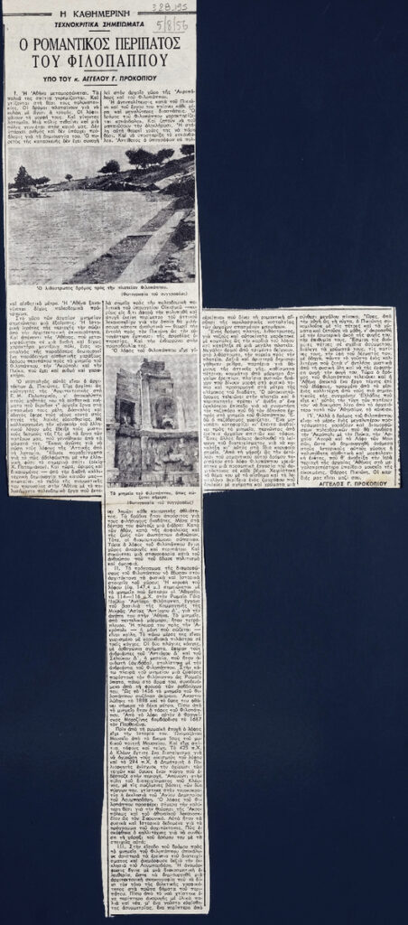 A clipping of the newspaper “I Kathimerini”, dated August 5, 1956.