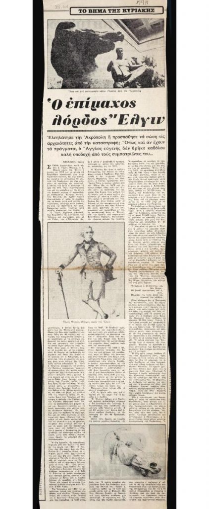 A clipping from the newspaper “To Vima”, dated May 9, 1971.
