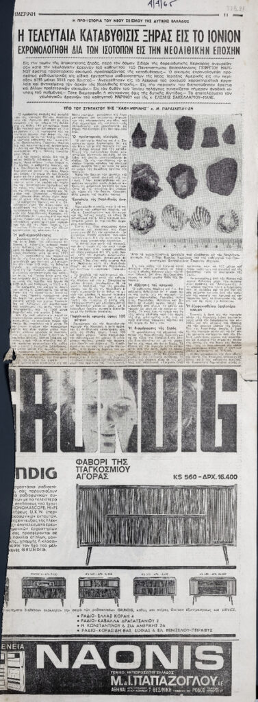A clipping from the newspaper “I Kathimerini”, dated April 4, 1965.