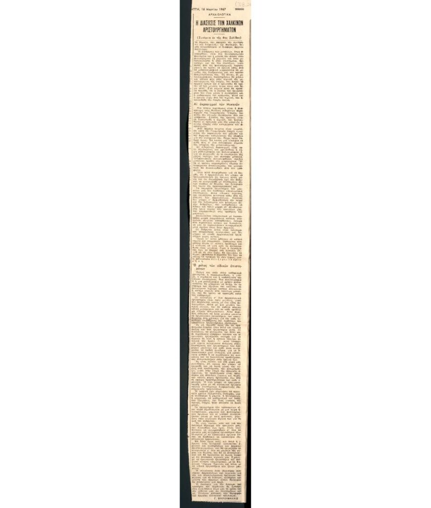 A clipping from the newspaper “I Kathimerini”, dated March 16, 1967.