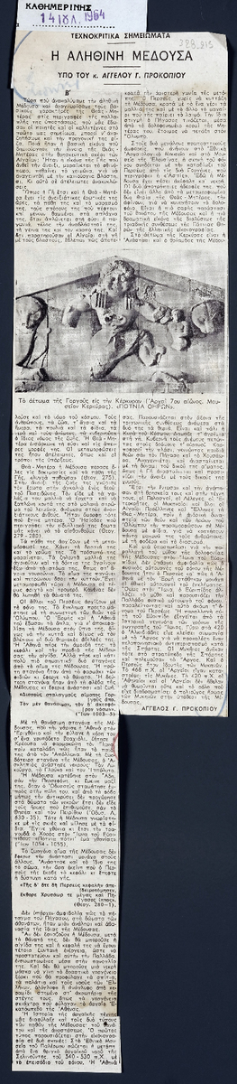A clipping from the newspaper “I Kathimerini”, dated July 14, 1964.