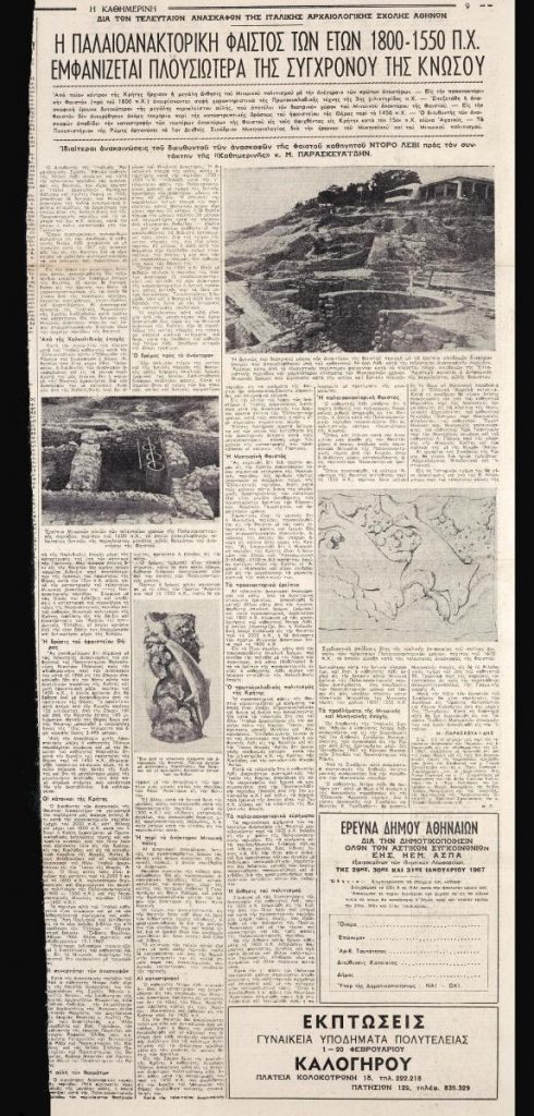 A clipping from the newspaper “I Kathimerini”, dated January 29, 1967.