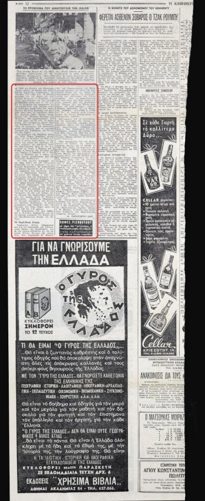 A clipping from the newspaper “I Kathimerini”, dated December 11, 1966.