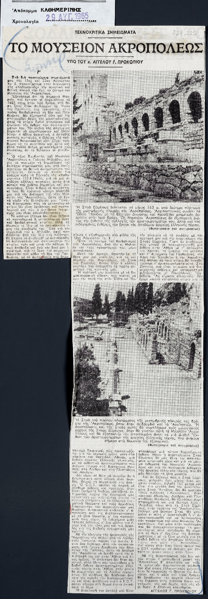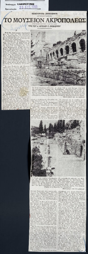 A clipping from the newspaper “I Kathimerini”, dated August 29, 1965.