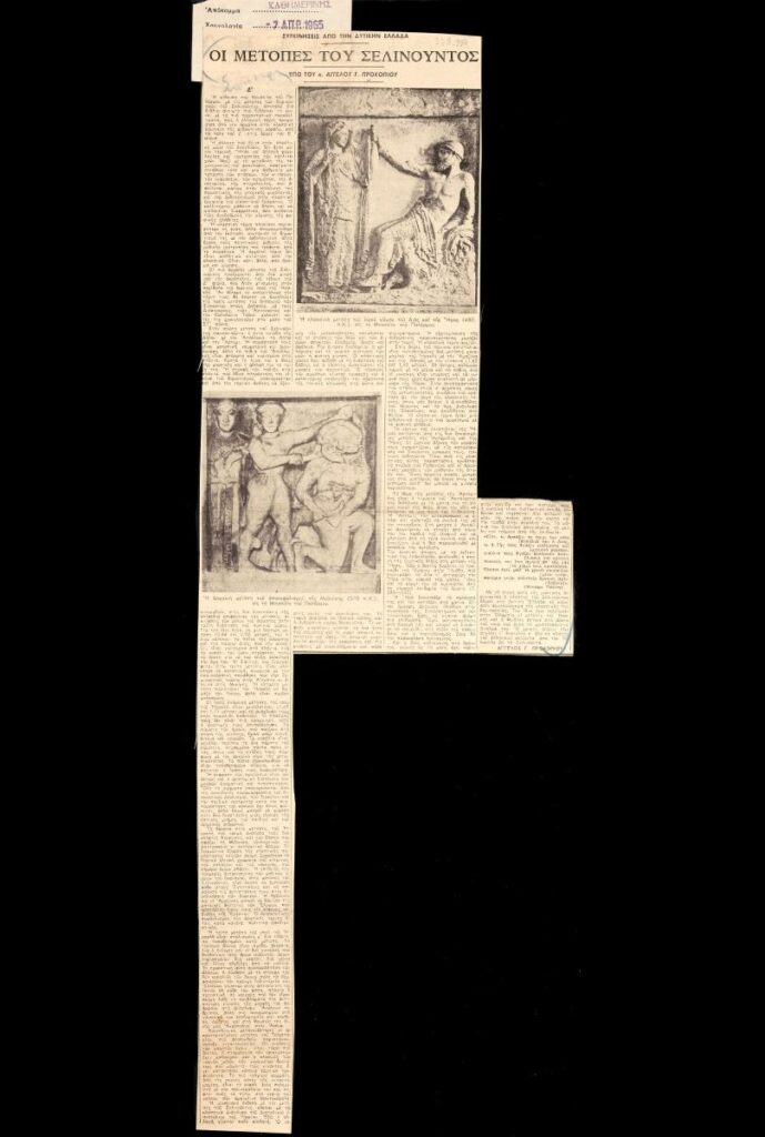A clipping from the newspaper “I Kathimerini”, dated July 4, 1965.