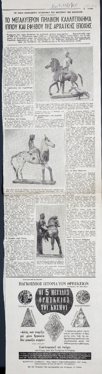 A clipping from the newspaper “I Kathimerini”, dated May 12, 1965.
