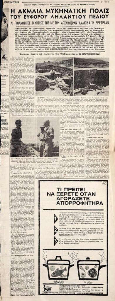A clipping from the newspaper “I Kathimerini”