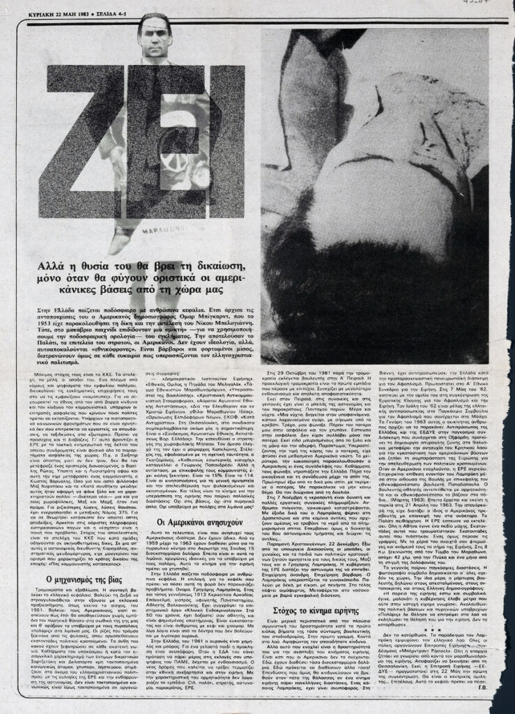 A newspaper clipping, dated May 22, 1983.